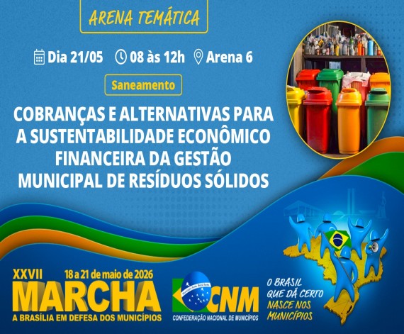 A XXVII Marcha a Brasília em Defesa dos Municípios acontece nos dias 18 a 21 de maio, no Centro Internacional de Convenções do Brasil (CICB). Para participar, os interessados devem efetuar a inscrição no site oficial da Marcha. A CNM lembra que as vagas são limitadas. Por este motivo é importante que o gestor municipal garanta o quanto antes a sua participação no evento. As inscrições para prefeitos de Municípios filiados à CNM e com as contribuições em dia são gratuitas.